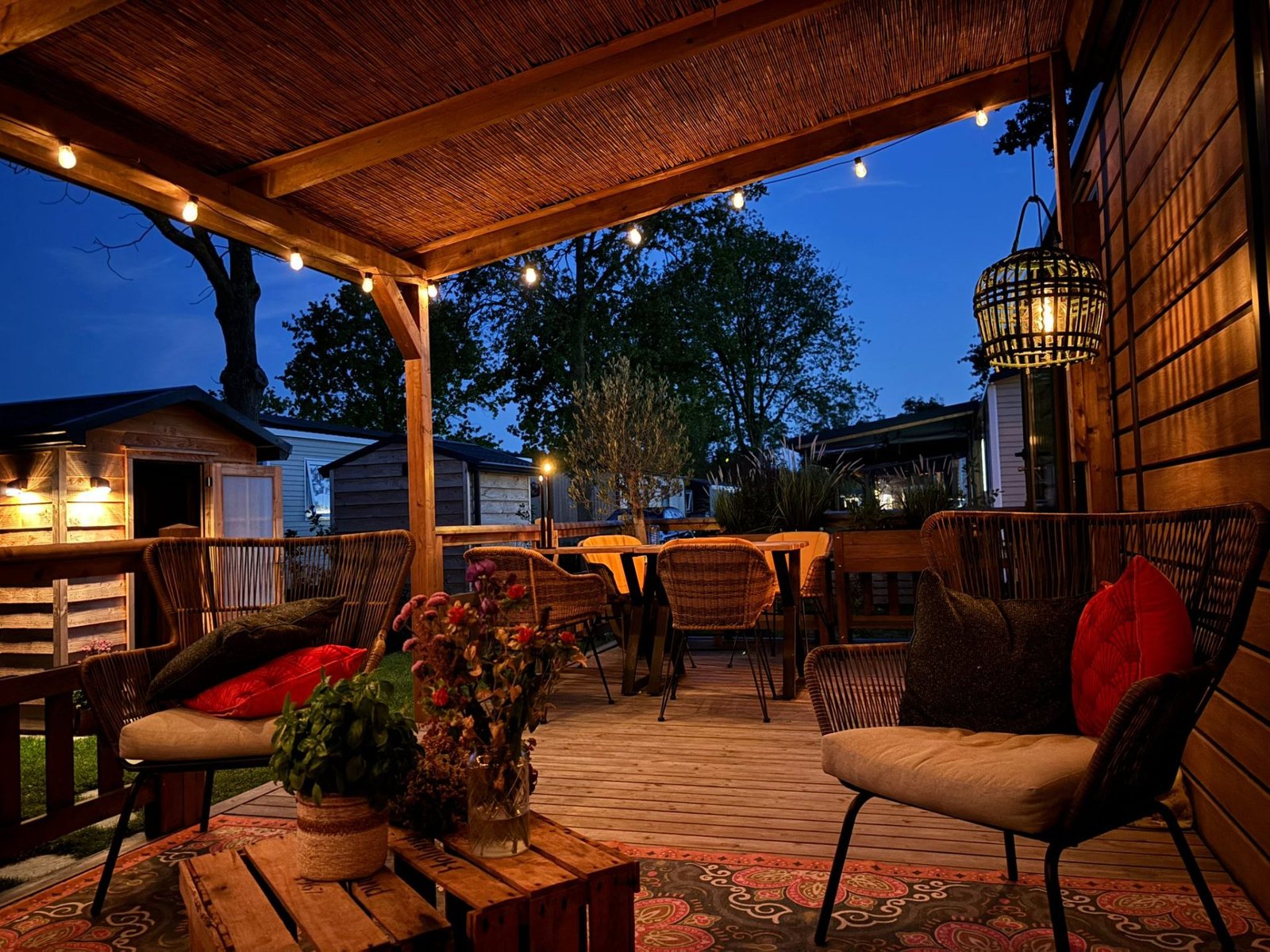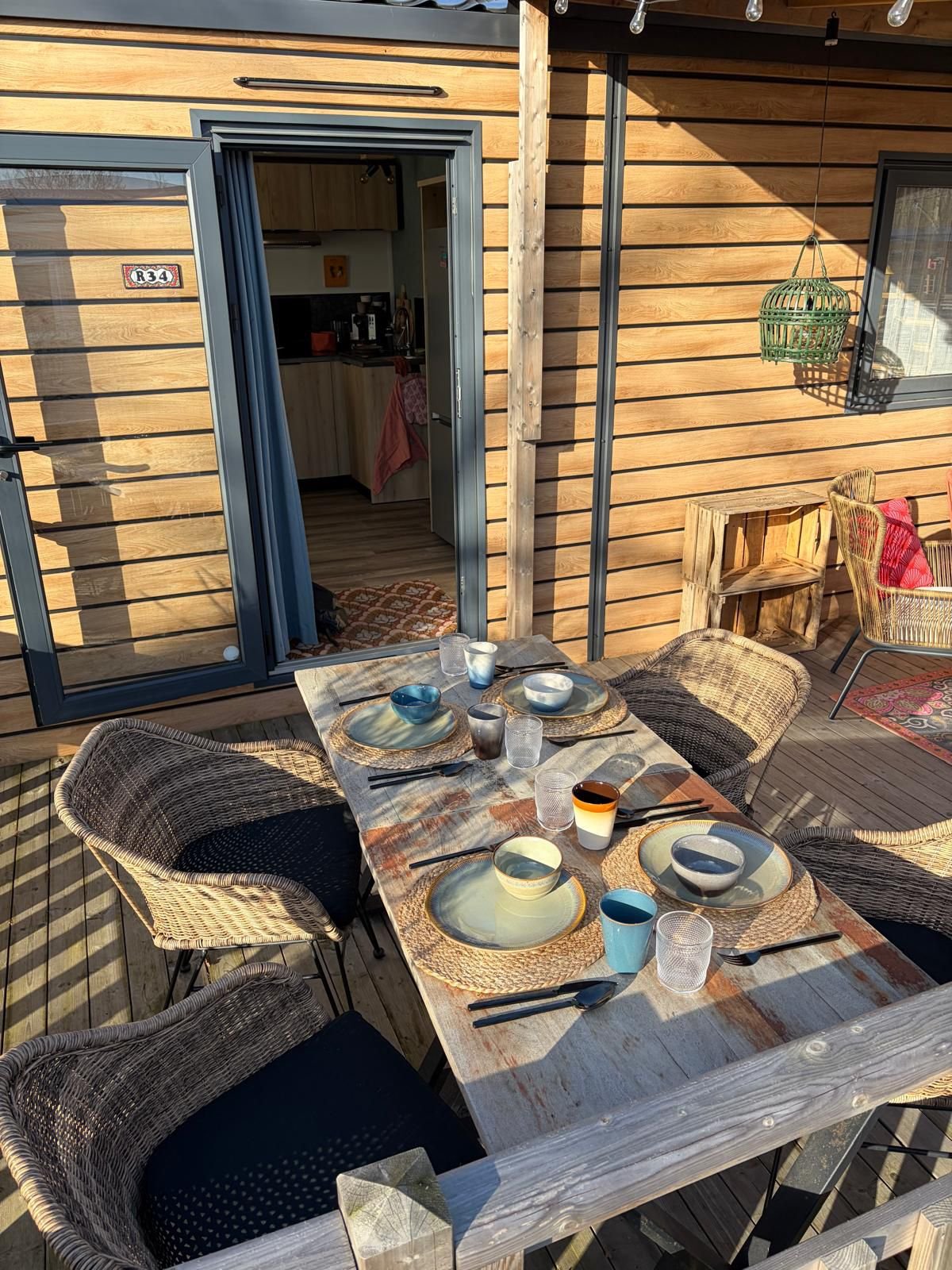 Ontspan op het overdekte terras met een heerlijk kopje thee of koffie. Het huisje heeft alles wat je nodig hebt voor een zorgeloze vakantie.