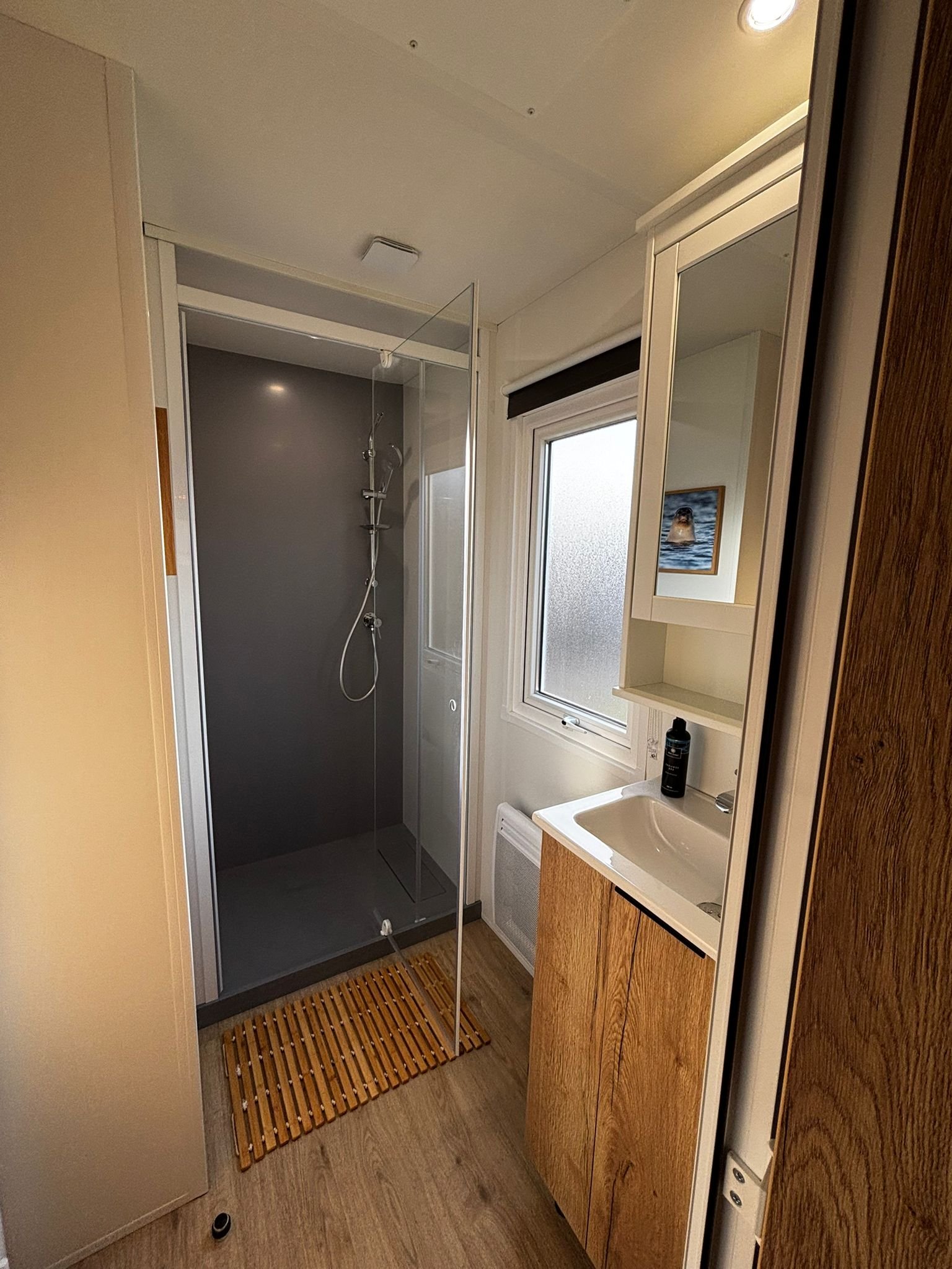Ja, bij elk huisje is een eigen parkeerplaats voor 1 auto inbegrepen. Er is ook een groot gratis parkeerterrein op de camping en een elektrisch laadstation (11 kW/h) via Robo Charge.